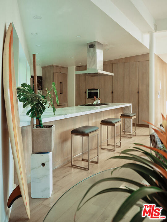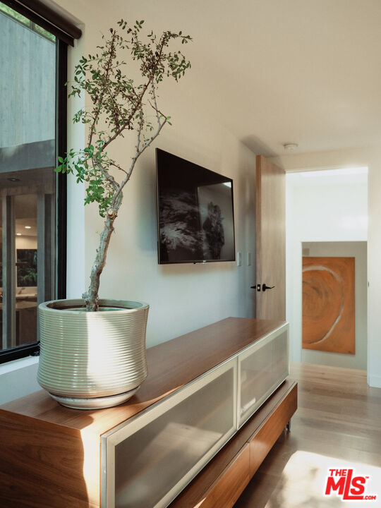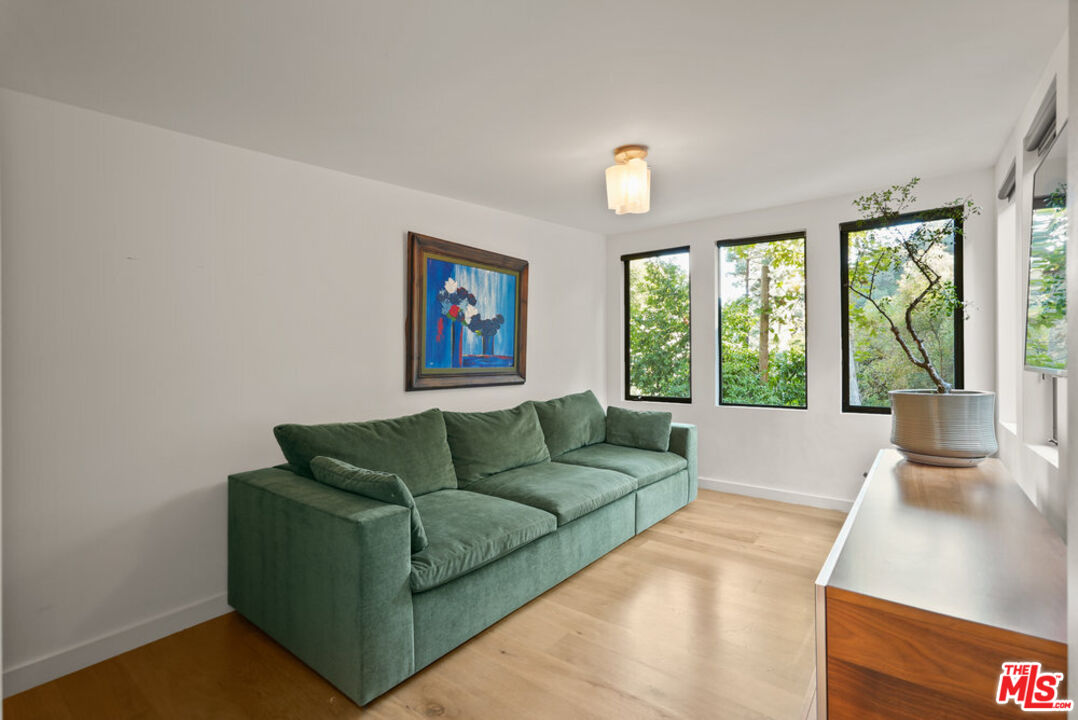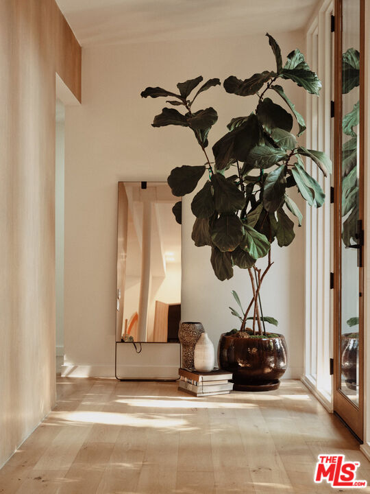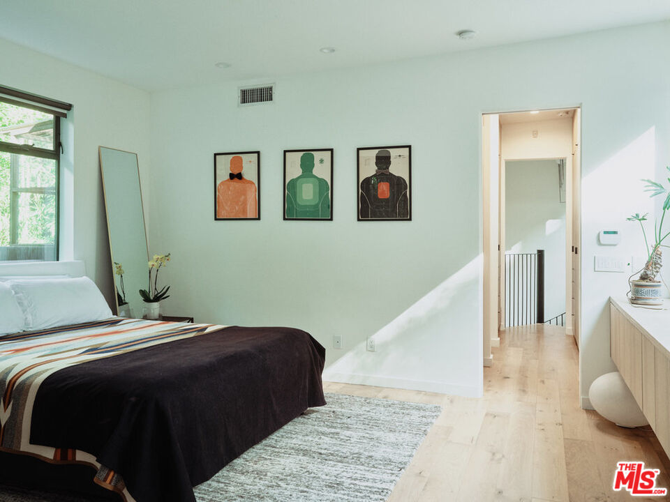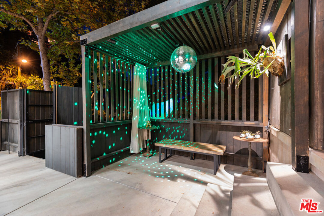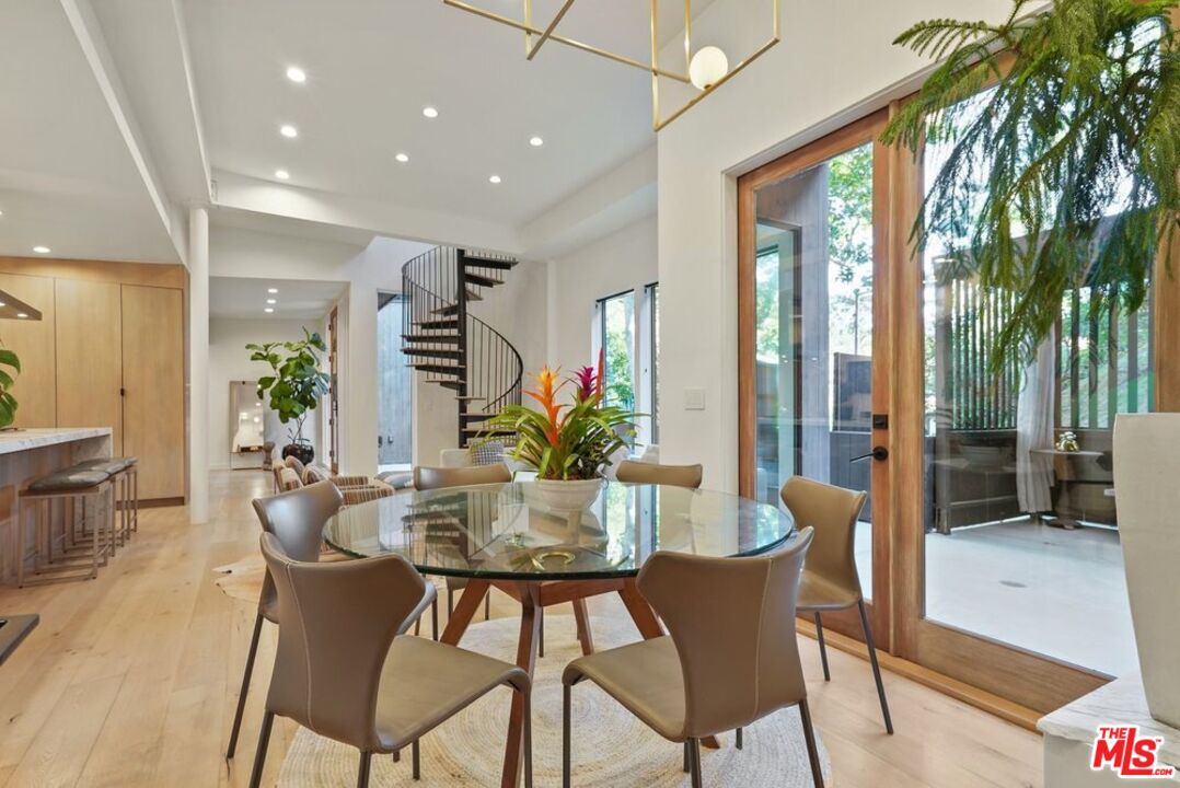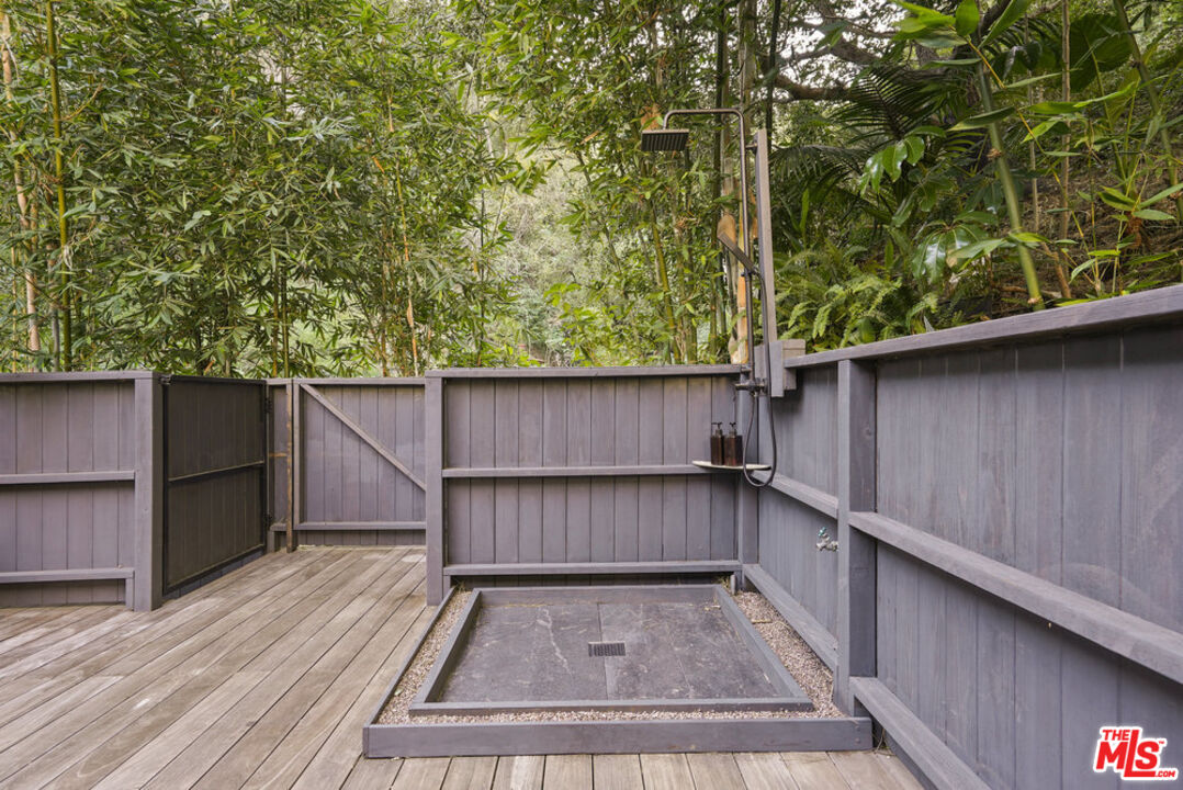 Meticulously renovated in 2017 by globally acclaimed architect Alex Pettas, AIA formerly of Marmol Radziner, this Wabi-Sabi inspired residence seamlessly blends nature with refined living. Experience the harmonious connection with the outdoors through abundant indoor-outdoor living spaces. Admire the solid white oak floors that grace the interior. Feast on the gourmet kitchen, adorned with its waterfall edge Carrera marble. Bask in wall-to-wall windows while enjoying views of a rare and tropical plant collection. The focal point of the dining room, a sculptural chandelier from the prestigious Italian design house Venice M, creates an exquisite atmosphere. Adjacent is a wine room, leading to a spacious patio perfect for enchanting alfresco dining amidst the alluring scent of trailing jasmine. Beyond the living room, the first floor offers two bedrooms and a bathroom showcasing Ann Saks tile and FRANKE fixtures, setting the tone for luxurious living. Ascend the steel spiral staircase to discover the primary suite, featuring two walls of custom oak closets that artfully disappear, embodying a simple yet elegant aesthetic. Unwind in the sophisticated soaker tub, complete with Airbath system jets and finished with fixtures by esteemed designer Jason Wu. The bedroom, with panoramic garden views, beckons relaxation and draws the eye out through accordion-style sliding glass doors. Once fully opened, immerse yourself in the expansive deck crafted from Ipe wood, complete with a private outdoor shower. Explore the permaculture-designed garden, where mature fruit trees, including citrus, apricot, plum, taro, and assorted berries, thrive. The western portion of the lush tropical landscape, bordered by giant timber bamboo, provides privacy and hosts an Alaskan white oak Japanese Ofuro tub designed by renowned artisan Andrew Brant. This natural sanctuary is the pinnacle of refined living that's seamlessly integrated with nature. Fully-furnished. Small pets okay.